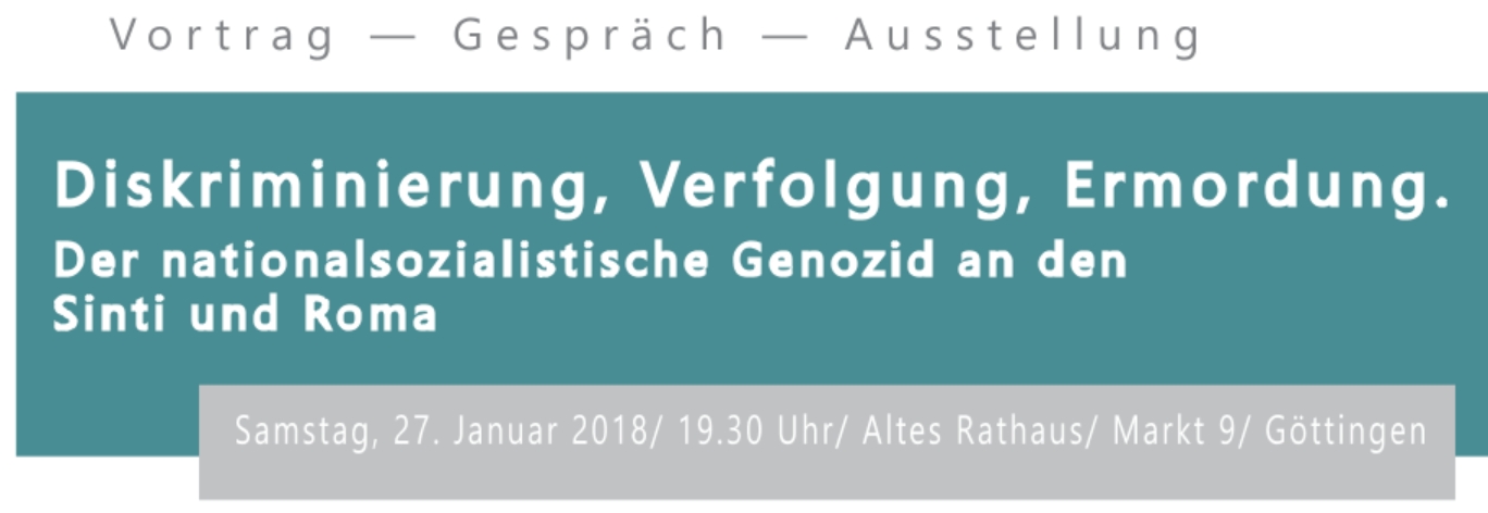 Pressemitteilung Diskriminierung, Verfolgung, Ermordung. Der nationalsozialistische Genozid an den Sinti und Roma. Samstag, 27.01.2018, 19.30 Uhr Altes Rathaus, Göttingen Am kommenden Samstag, 27.01. jährt sich die Befreiung des Vernichtungslagers Auschwitz-Birkenau…
