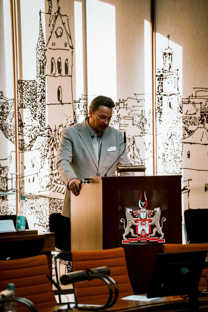 Einen besonderen Akzent setzte der Vortrag von Ricardo Tietz, selbst Sinto aus Hannover. Unter dem Titel „3.0 – Perspektiven der neuen Generation deutscher Sinti“ stellte er die Lebenswirklichkeiten junger Sinti zwischen Ausschluss und Emanzipation dar – mit einem besonderen Fokus auf die Situation an den Schulen und Universitäten, aber auch im Bereich der politischen Erinnerungskultur. Sein Beitrag machte deutlich, dass die neue Generation deutscher Sinti einerseits erstmals Zugang zu Bildung, Wissenschaft und beruflicher Teilhabe hat, andererseits aber noch immer vor erheblichen Barrieren und Diskriminierung steht.